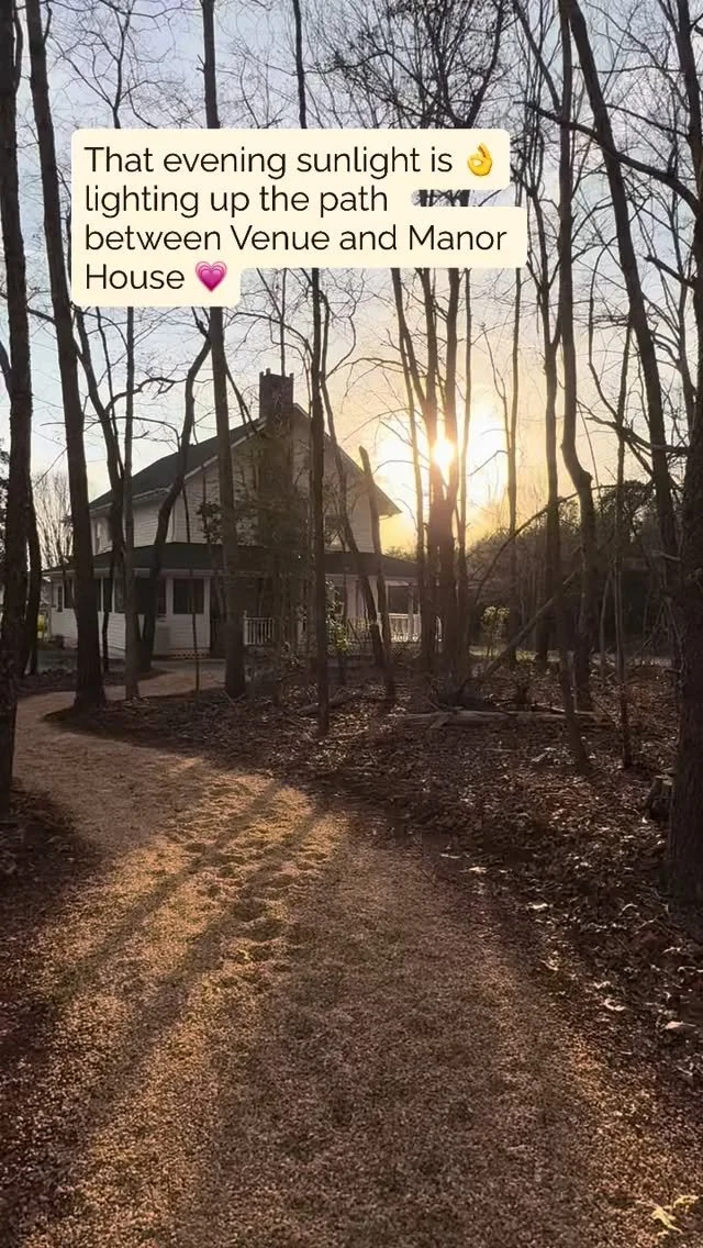 A gentle slope from the barn provides the perfect aisle to the tree adorned ceremony site. Old charm wooden church pews can provide beautiful & comfortable seating for your guests.